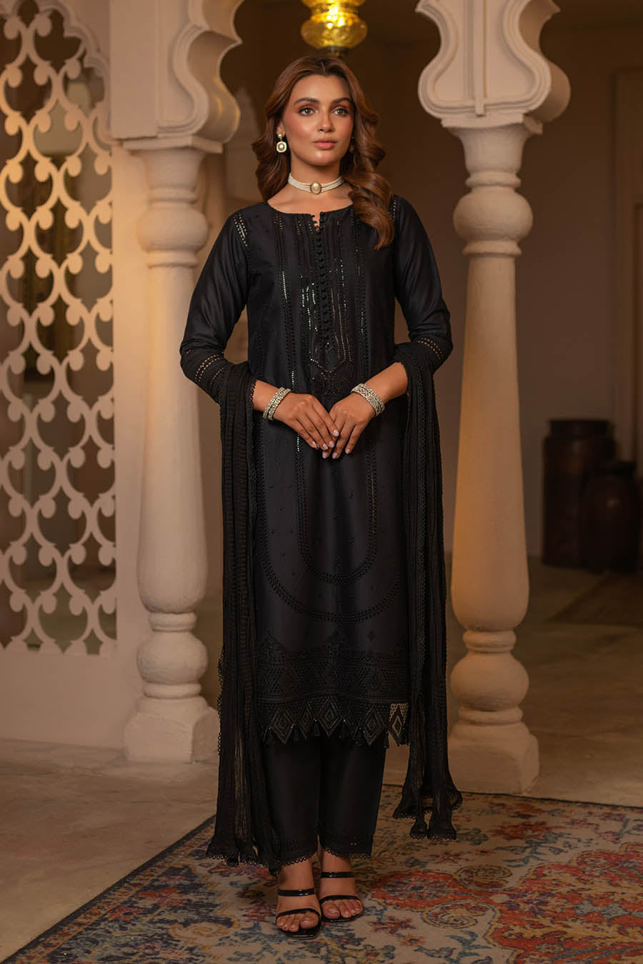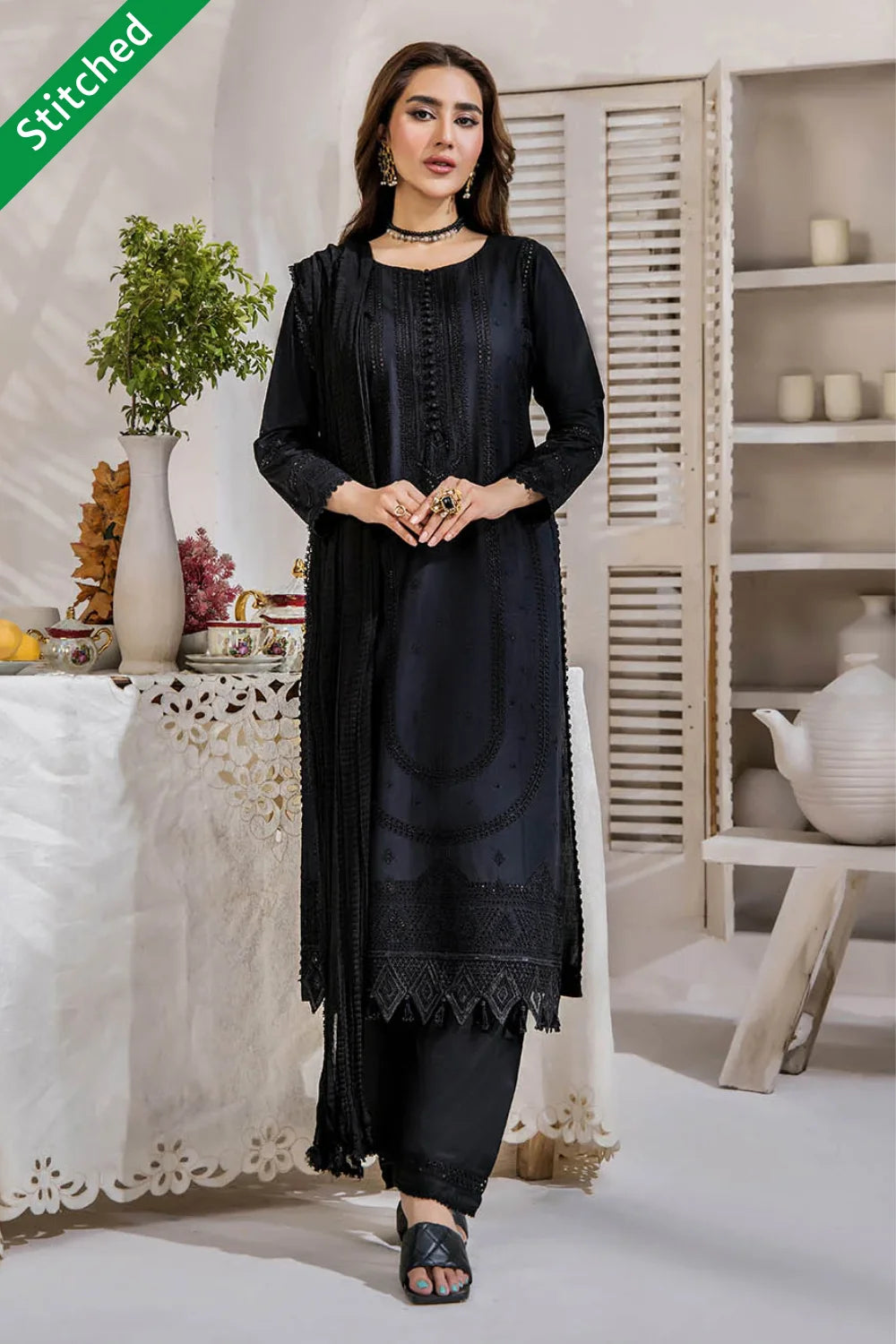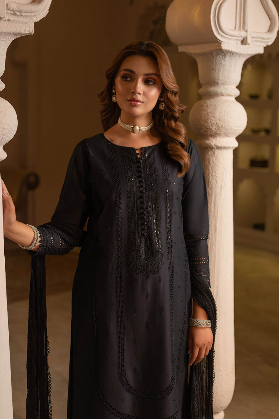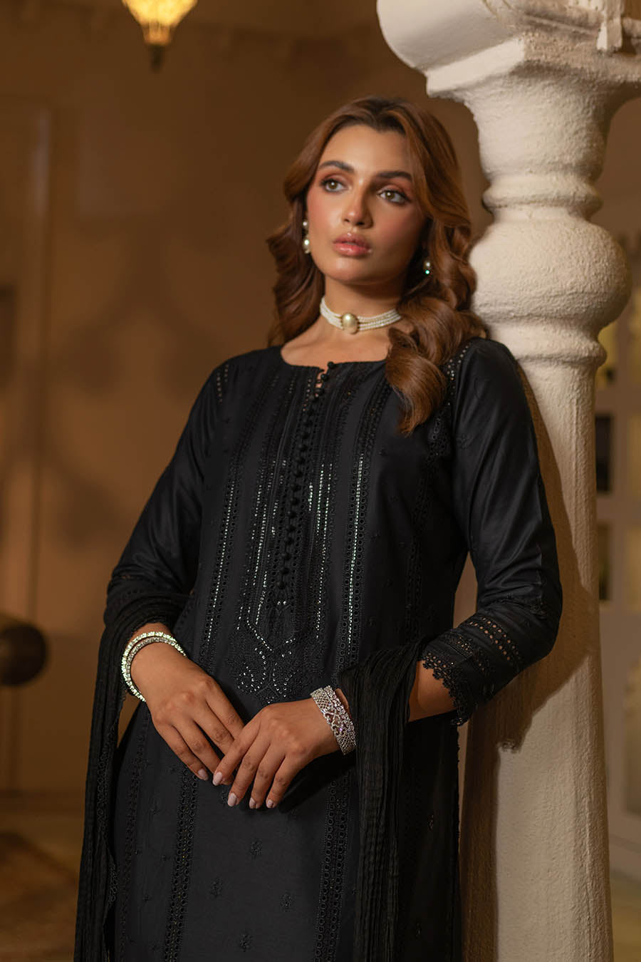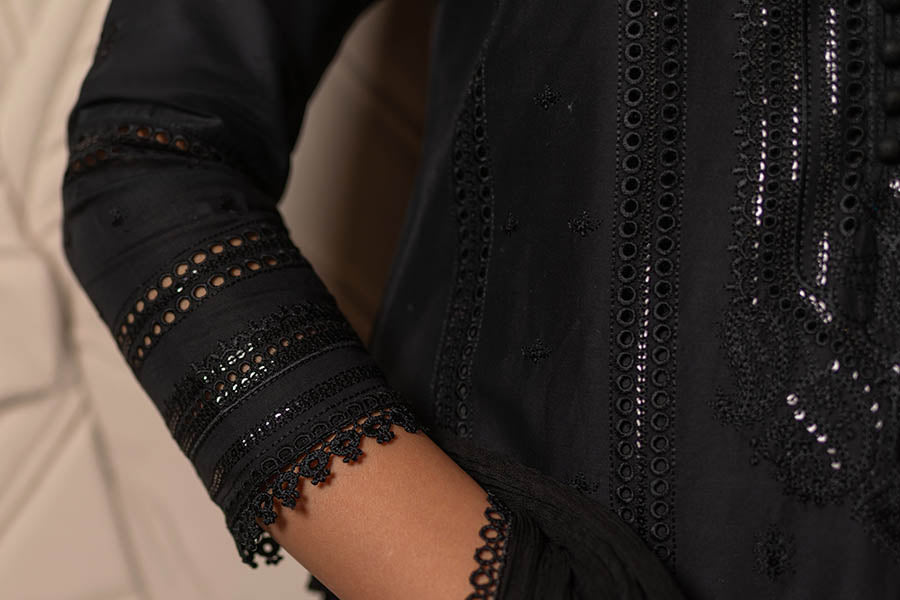 Black Readymade Pure Cotton Chikan Suit with Sequins Work