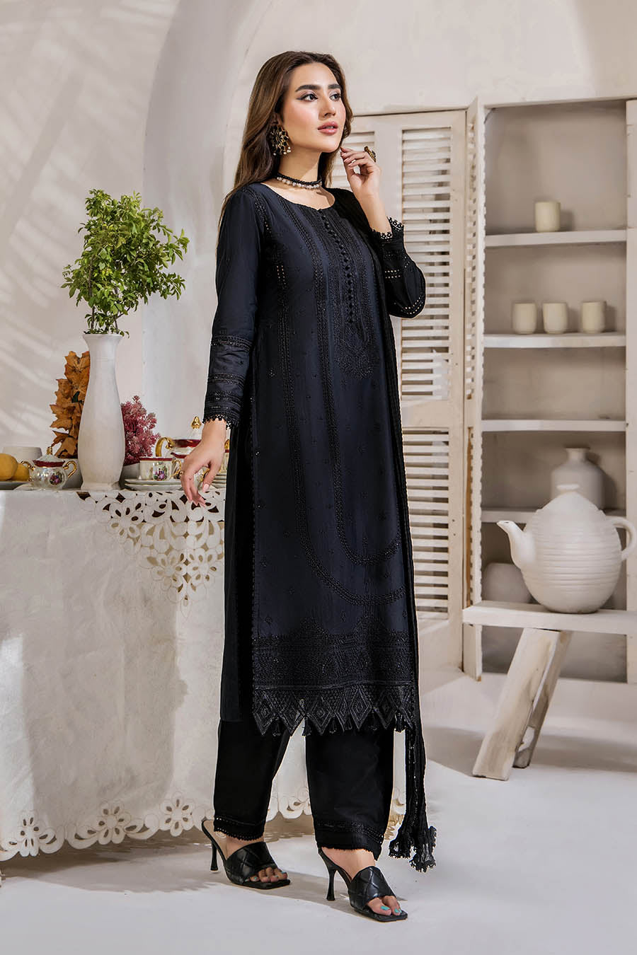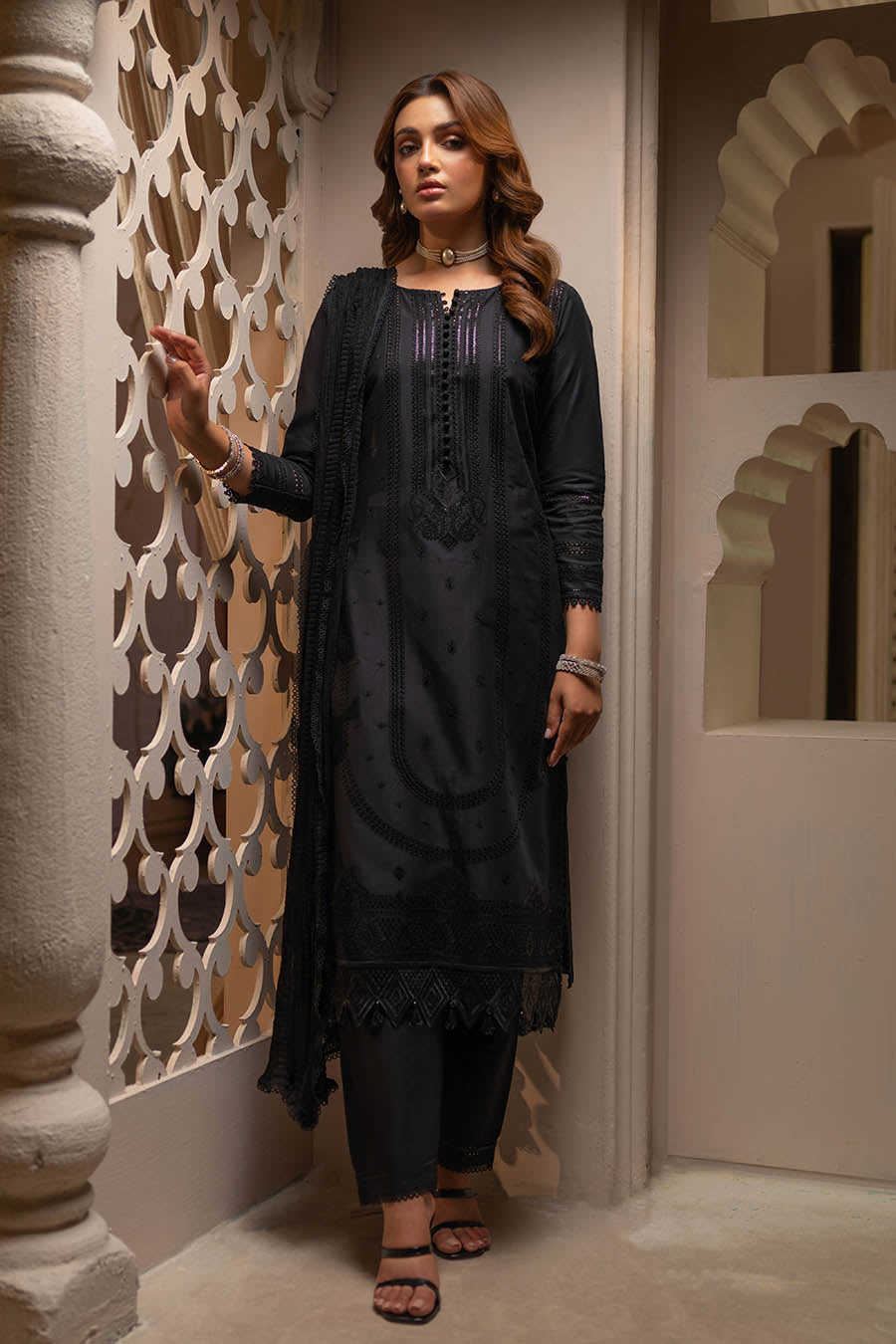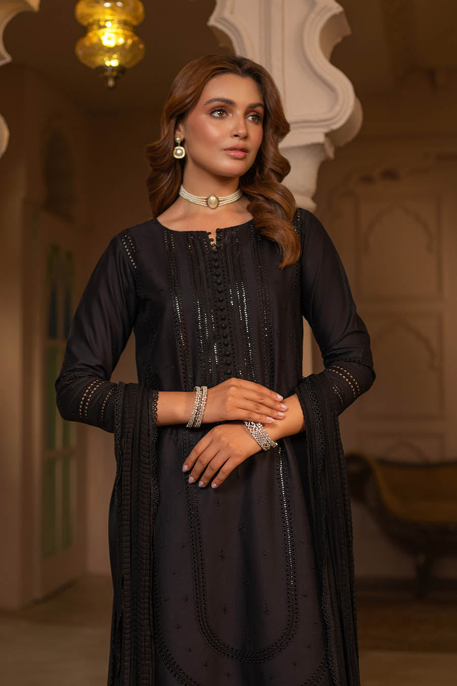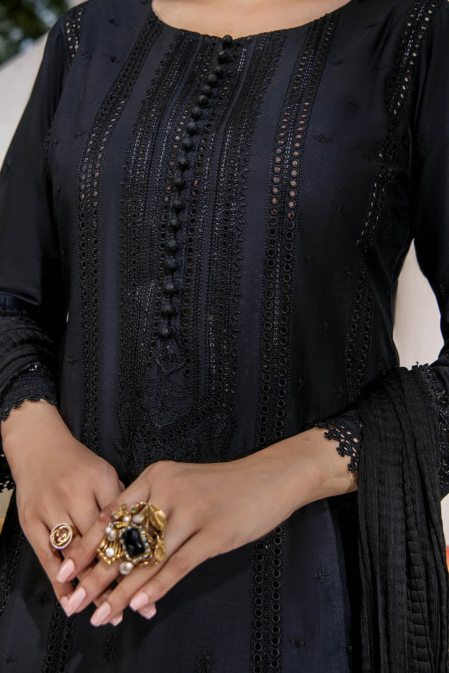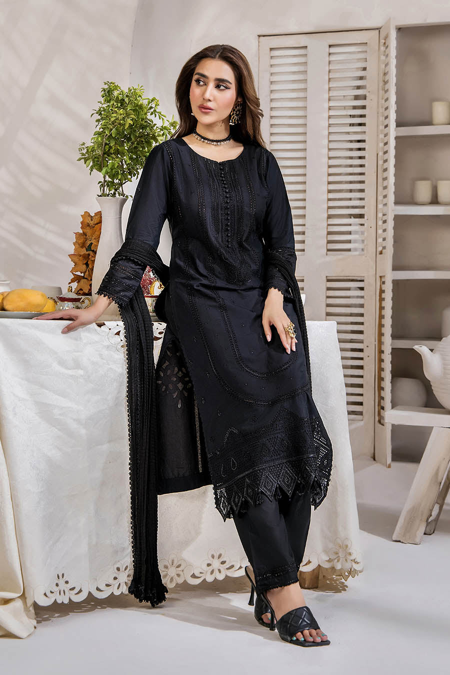 Black Readymade Pure Cotton Chikan Suit with Sequins Work