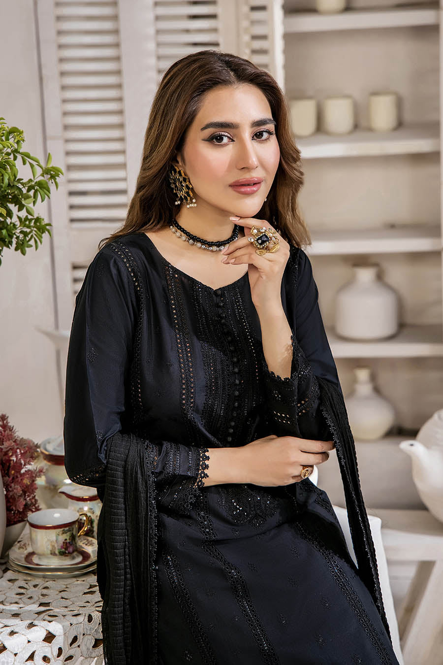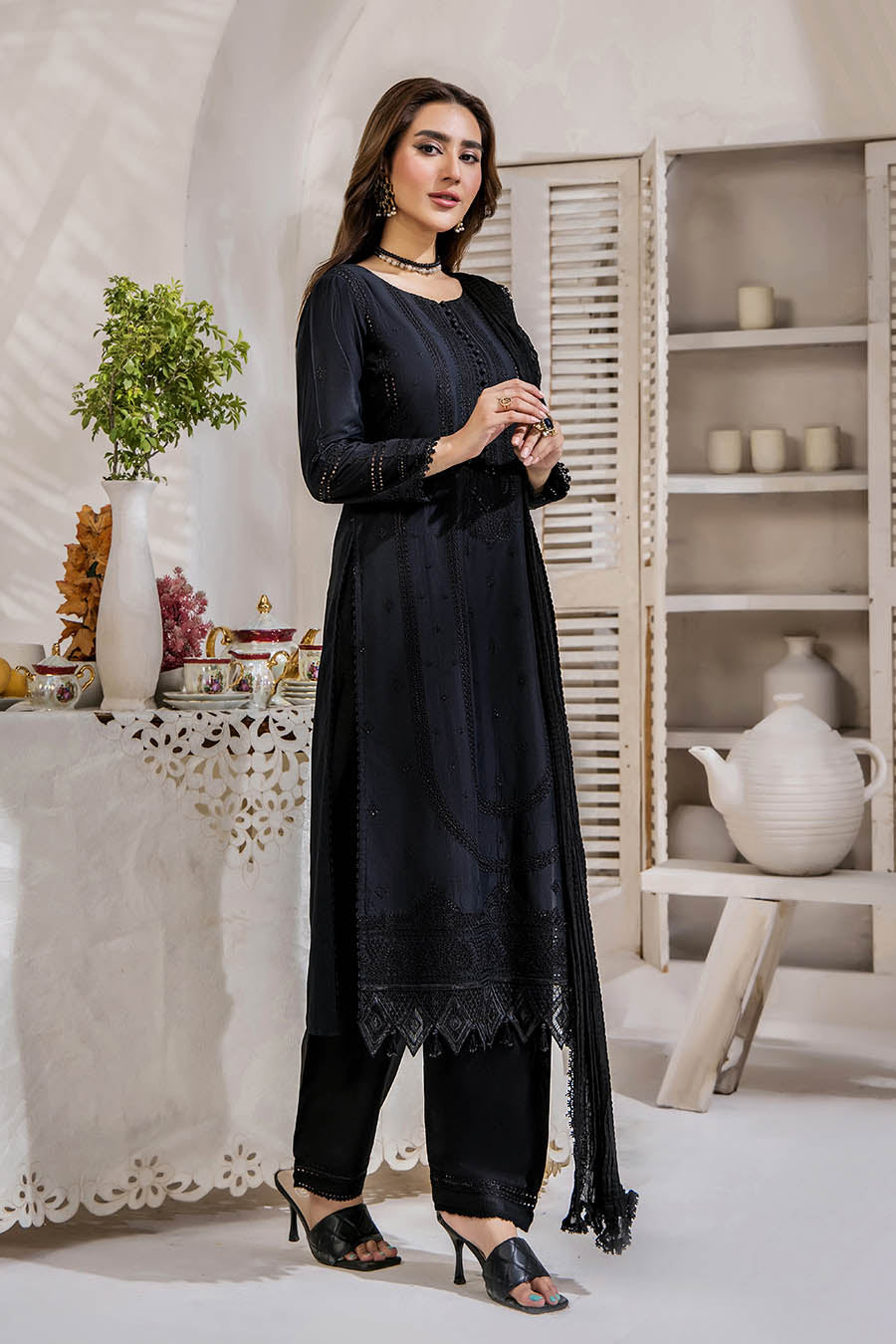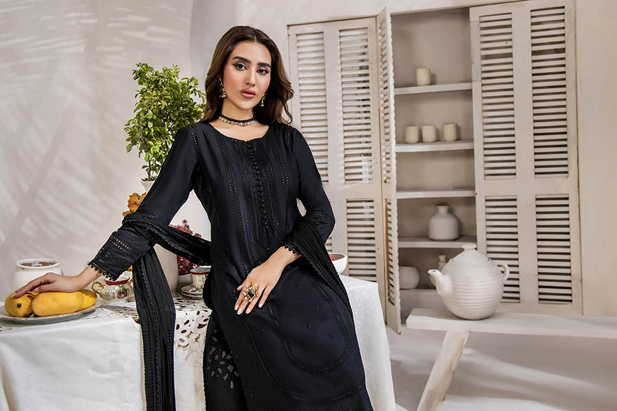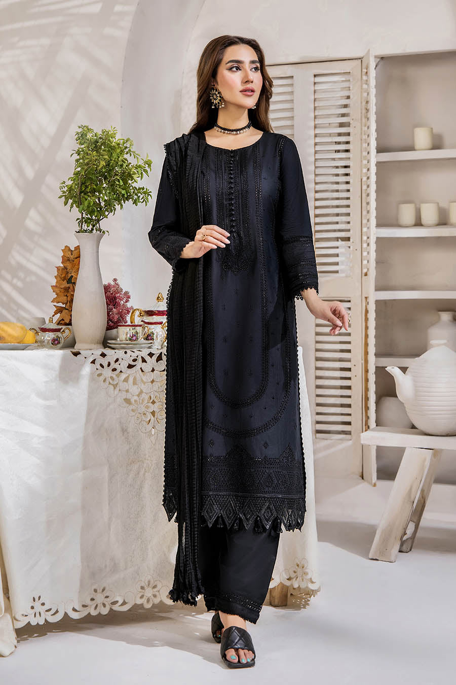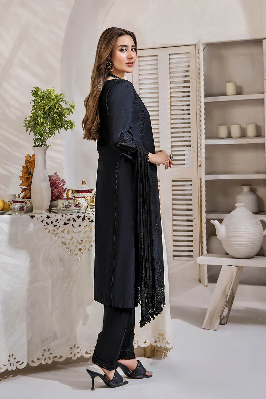 Black Readymade Pure Cotton Chikan Suit with Sequins Work