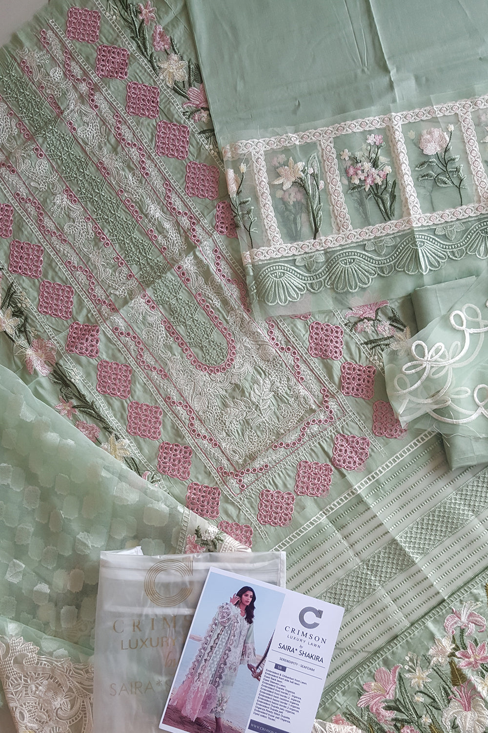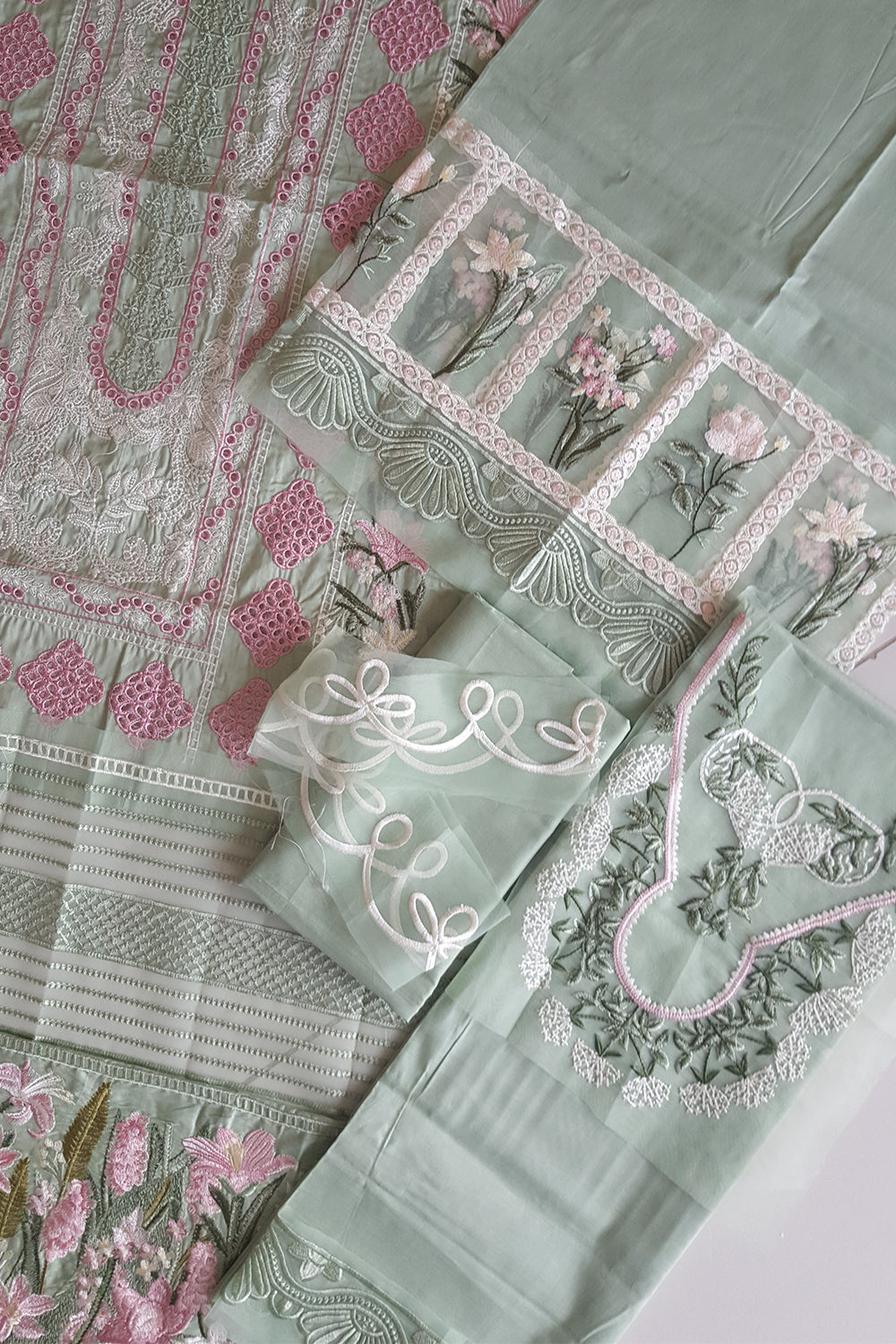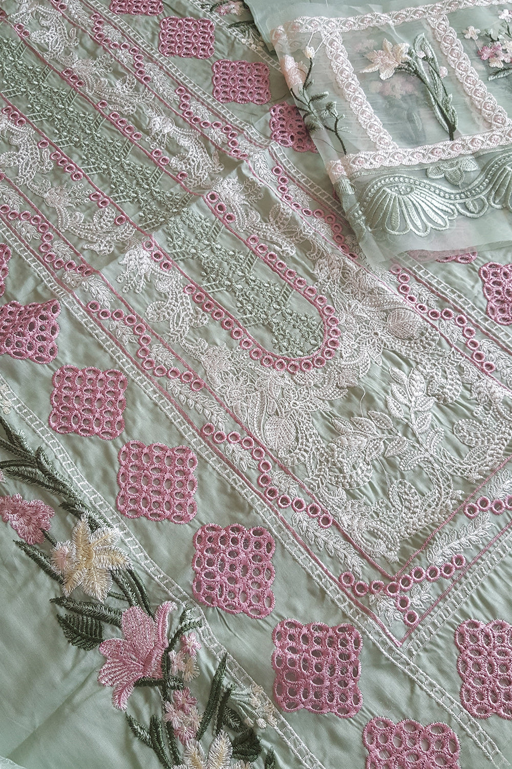 Embroidered Organza Broshia Dupatta with Attached Pallu & 2-Side Embroidered Lace Finished.