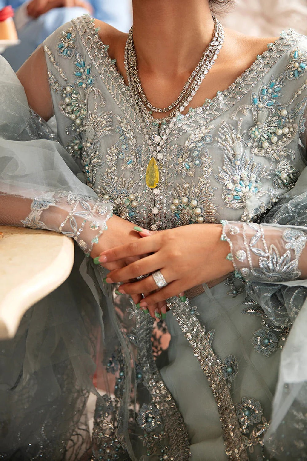 Embroidered and Sequined Pearl Embellished Daman Border Organza.