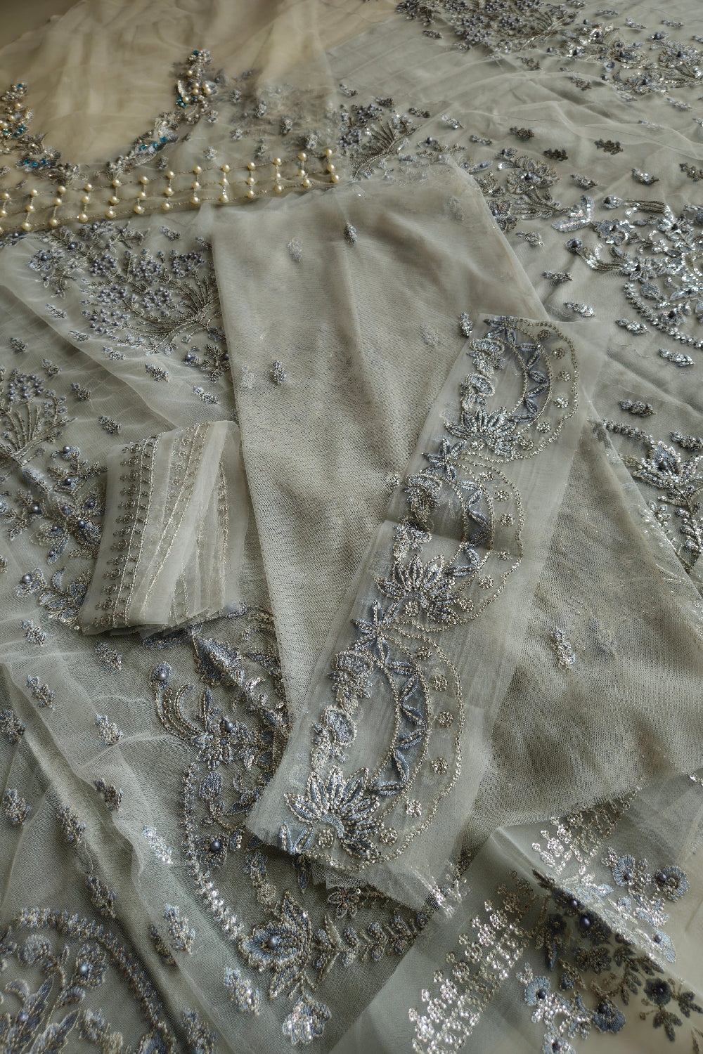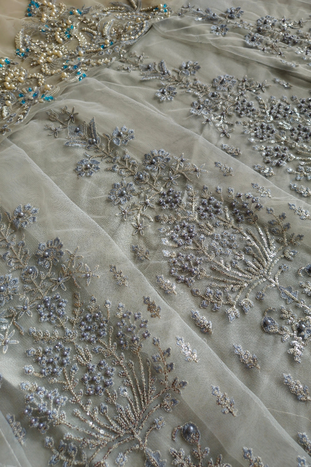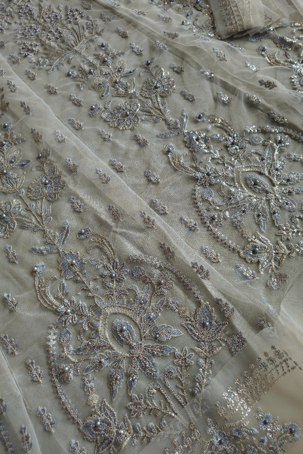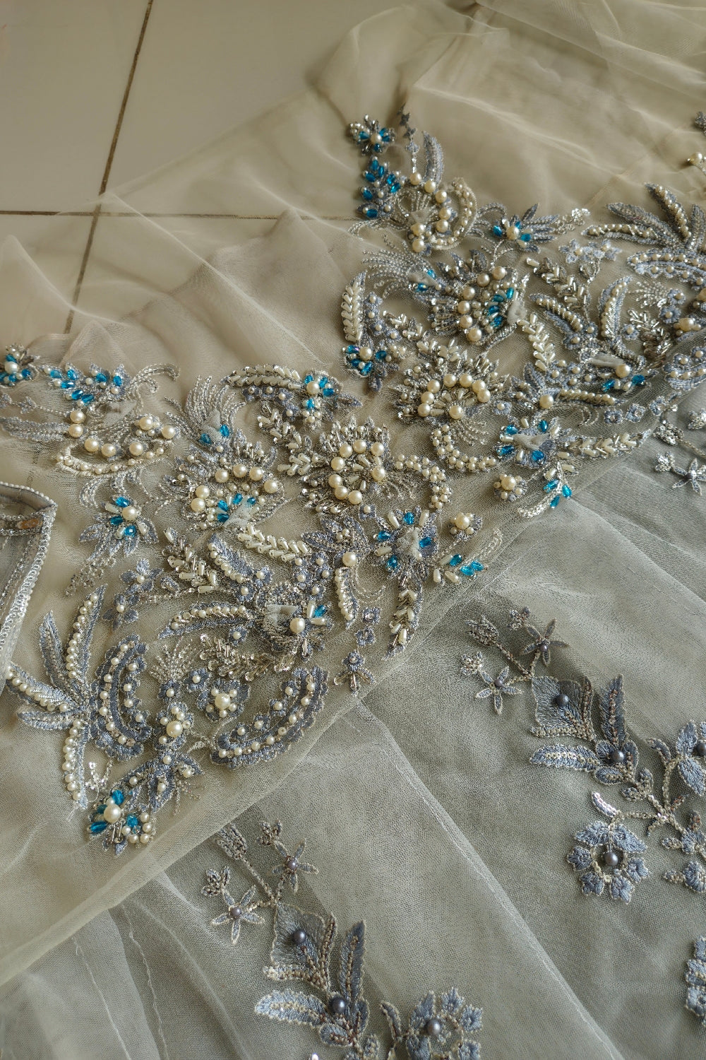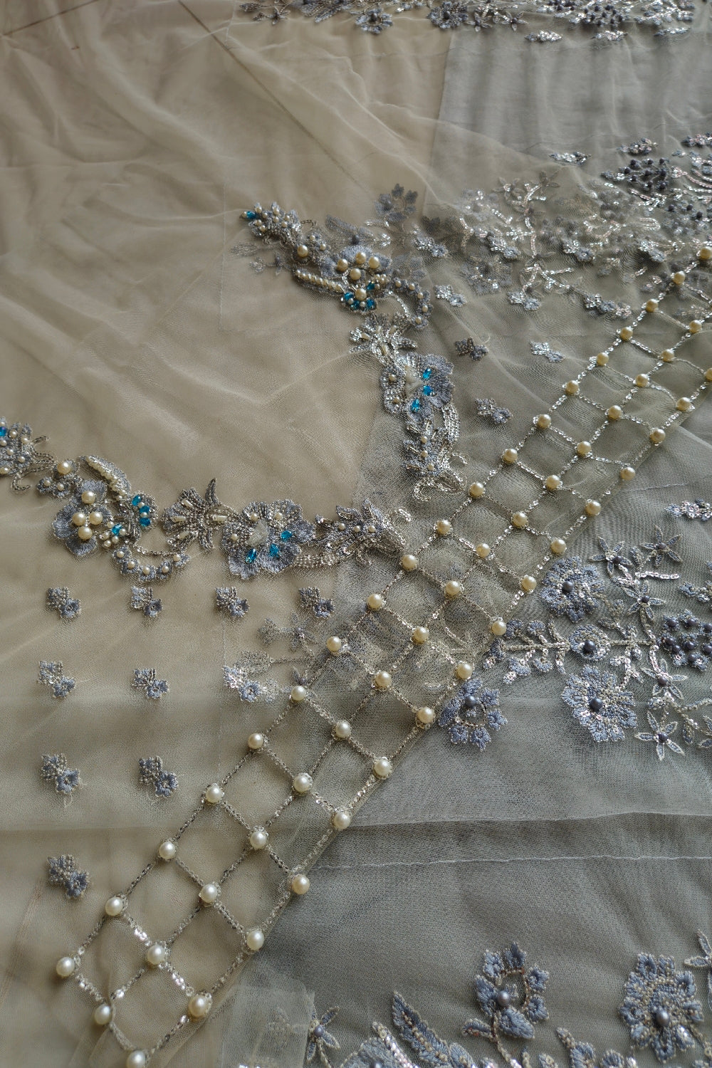 Embroidered and Pearl Embellished Front & Back Kalis Net.