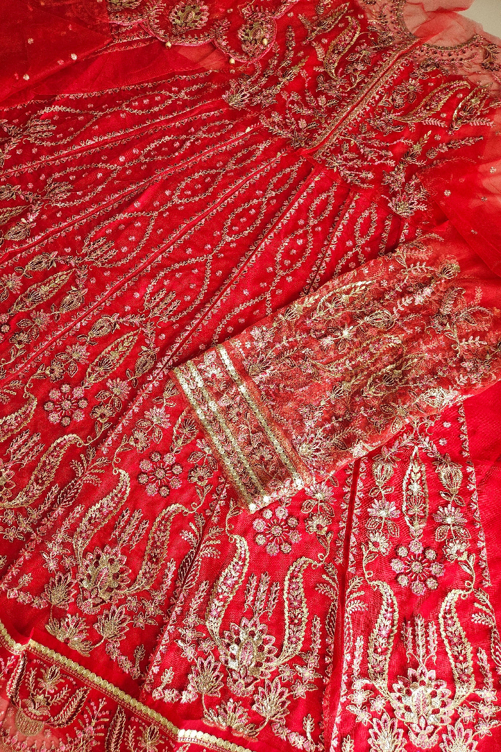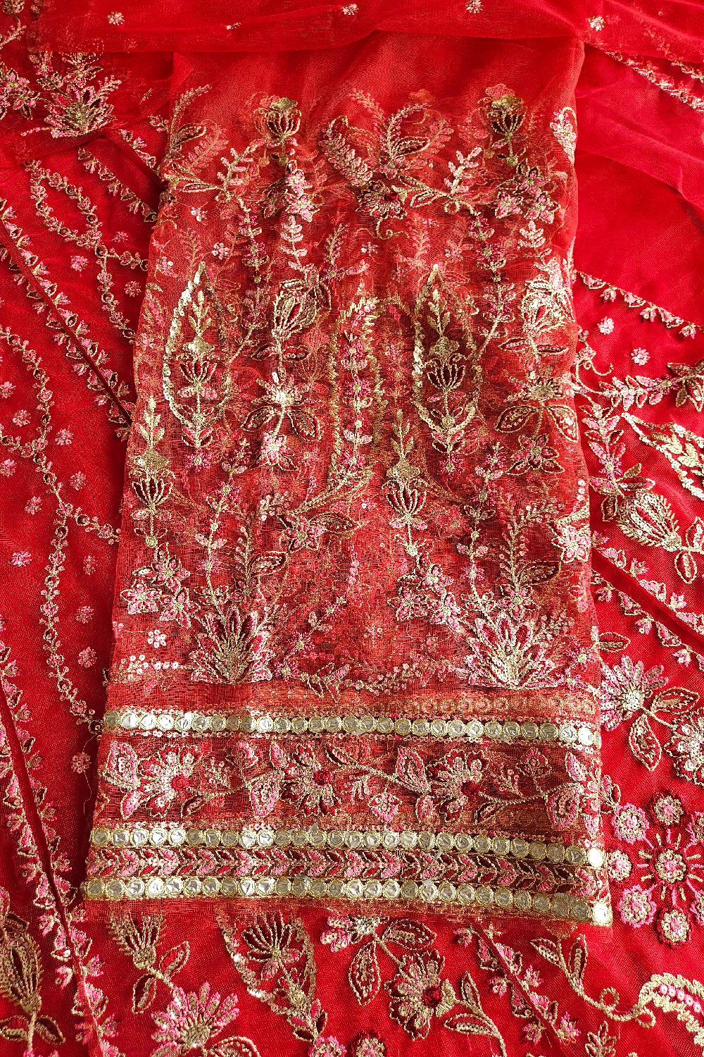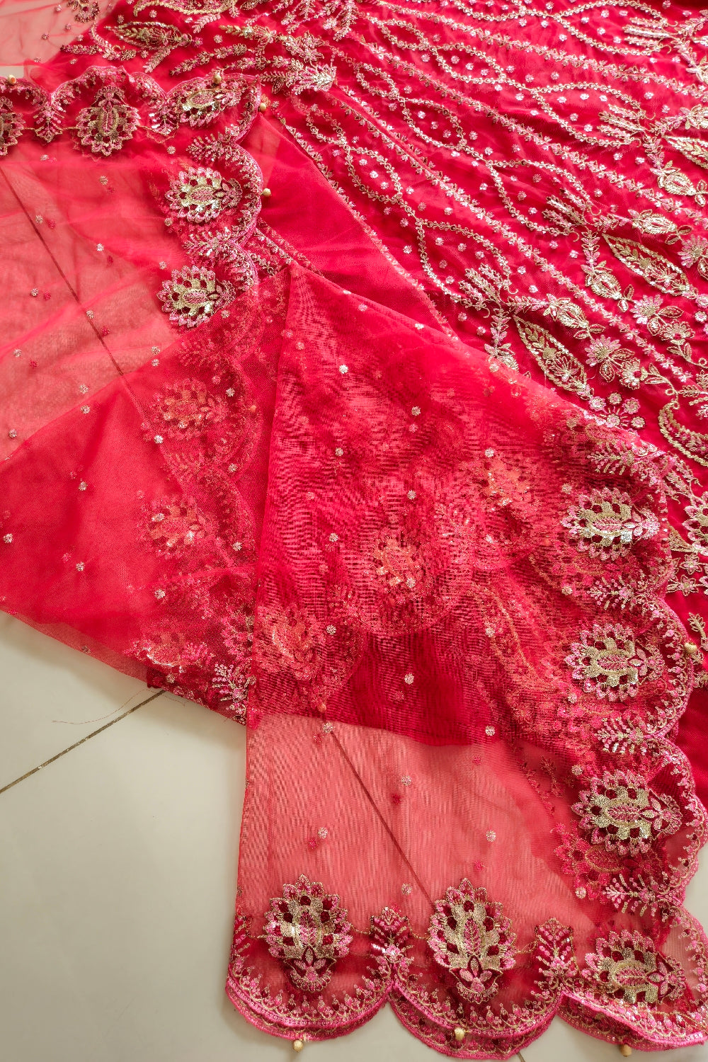 Net Embroidered Dupatta with Attached 4 Side Embroidered Bordered + Tassels.
