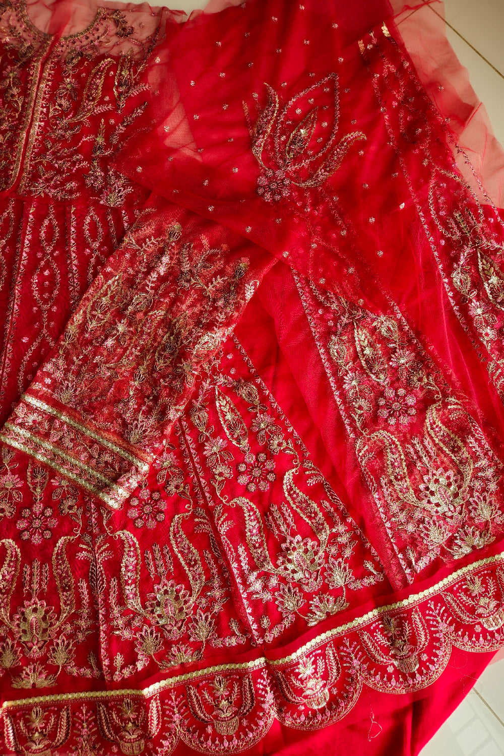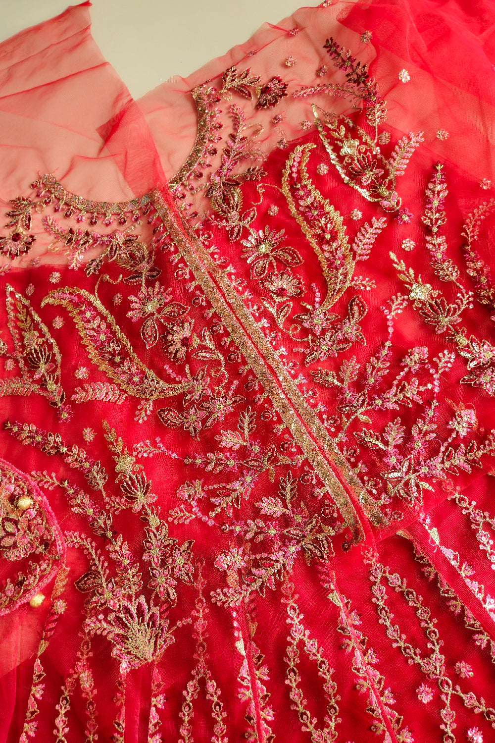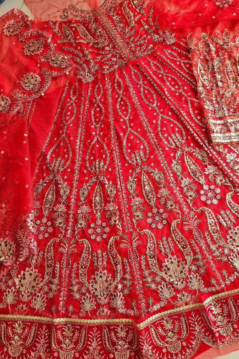 Net Embroidered Dupatta with Attached 4 Side Embroidered Bordered + Tassels.
