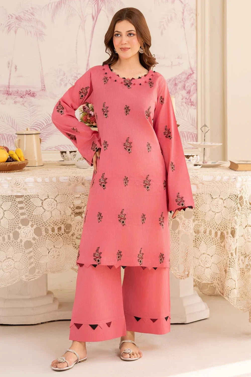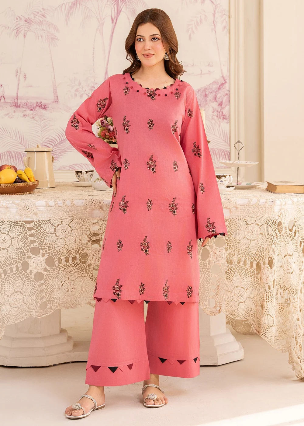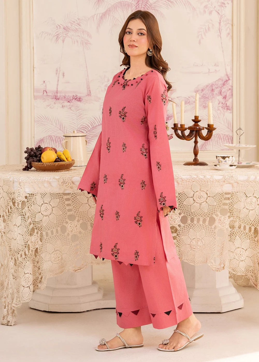 Pink Embroidered Cotton Kurta Set